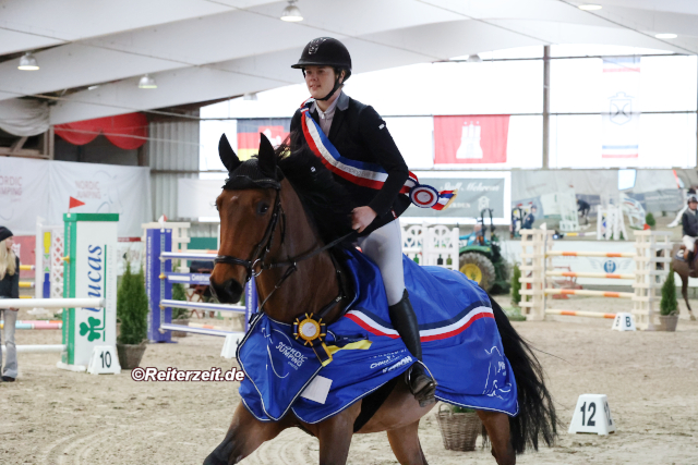 Marieke Reimers fegt zum Sieg im Großen Preis der Nordic Jumping events in Negernbötel.