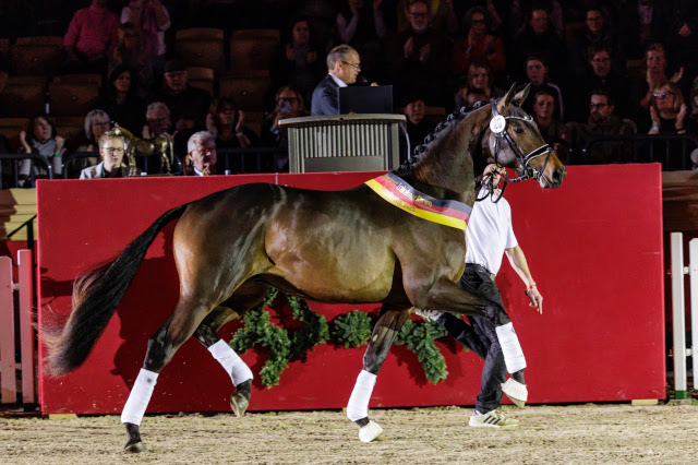Der erste Reservesieger trägt den Namen Goldkurs und vertritt bravourös den Debütjahrgang seines Vaters Impact. Goldkurs wurde als eine Jahrgangspitze mit Kraft und moderner Bewegungsmechanik gefeiert und entstammt einem hochbewährten mütterlichen Stamm des namhaften Züchterhauses Langels vom Gestüt Schäplitz, Bismark. Für 61.000 Euro wechselte er ins Rheinland. Zweiter Reservesieger wurde ein traumschöner Rapphengst namens Hannu Haakon von Scaglietti aus der Zucht des Trakehner Gestüts Staffelde, Kremmen. Nicole Derlin, Travenbrück, hatte den Hengst als Auktionsfohlen entdeckt und durfte sich nicht nur über einen Spitzenhengst der Körung, sondern auch über den Auktionspreis von 66.000 Euro freuen.