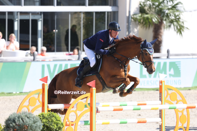 Es folgten einige Ritte mit Abwürfen, bis schließlich Patrick Stühlmeyer auf Chaloubino PS OLD an der Reihe war. Stühlmeyer lieferte eine Musterrunde ab: Er ritt perfekt, ruhig und flüssig. Außerdem hatte er ein unglaubliches Tempo vorgelegt und die Führung übernommen.